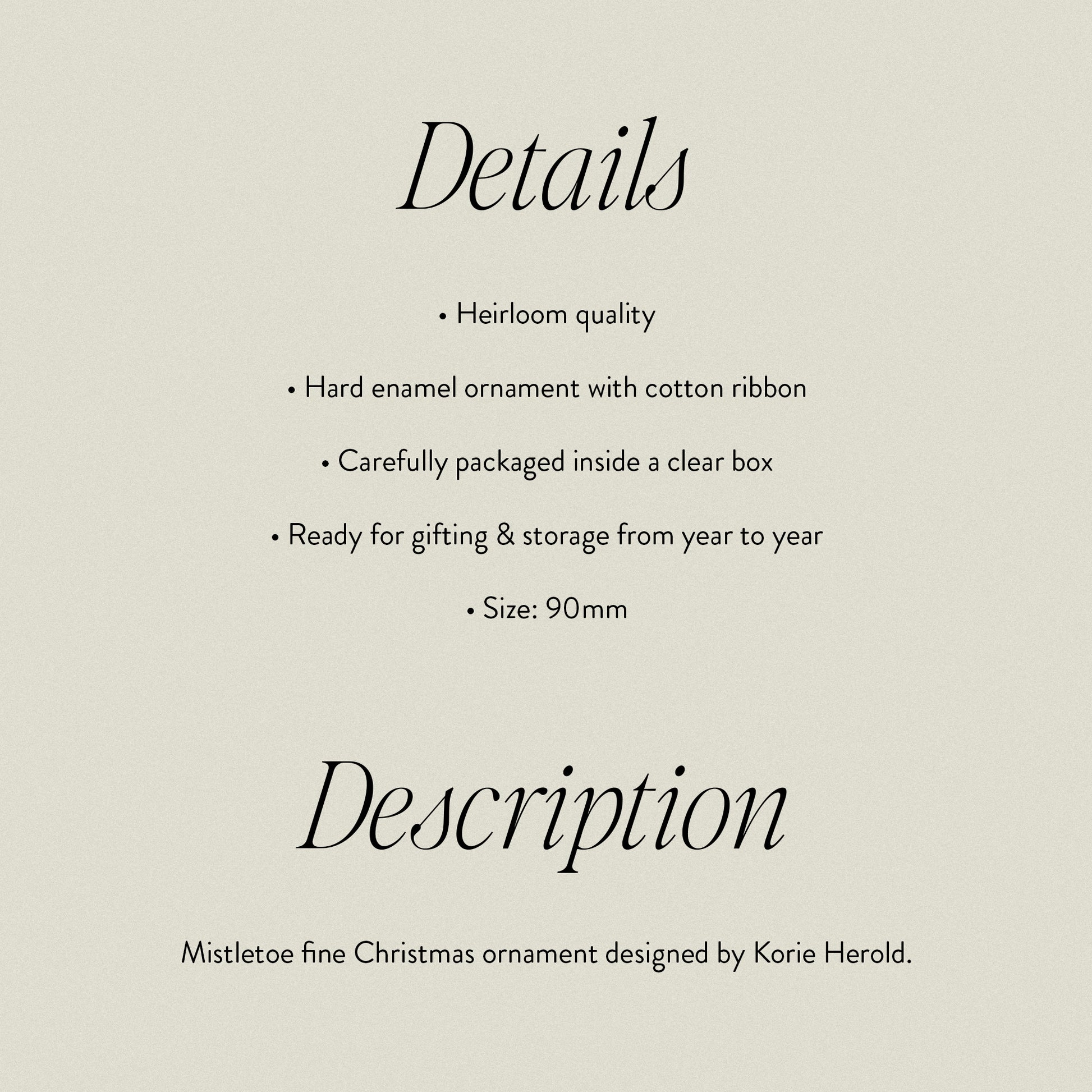 Mistletoe fine Christmas ornament designed by Korie Herold.