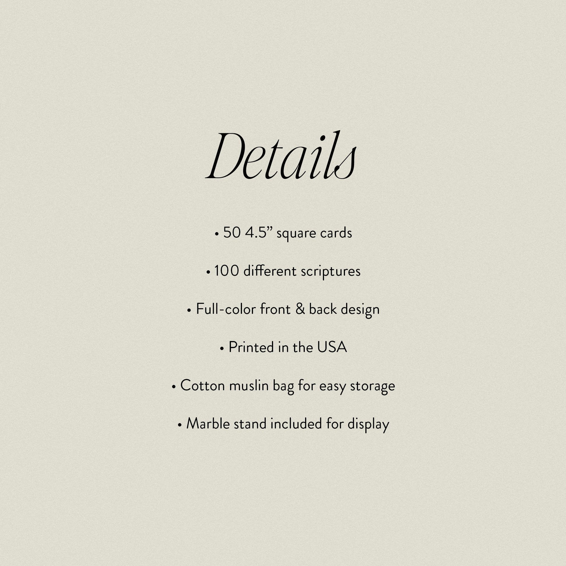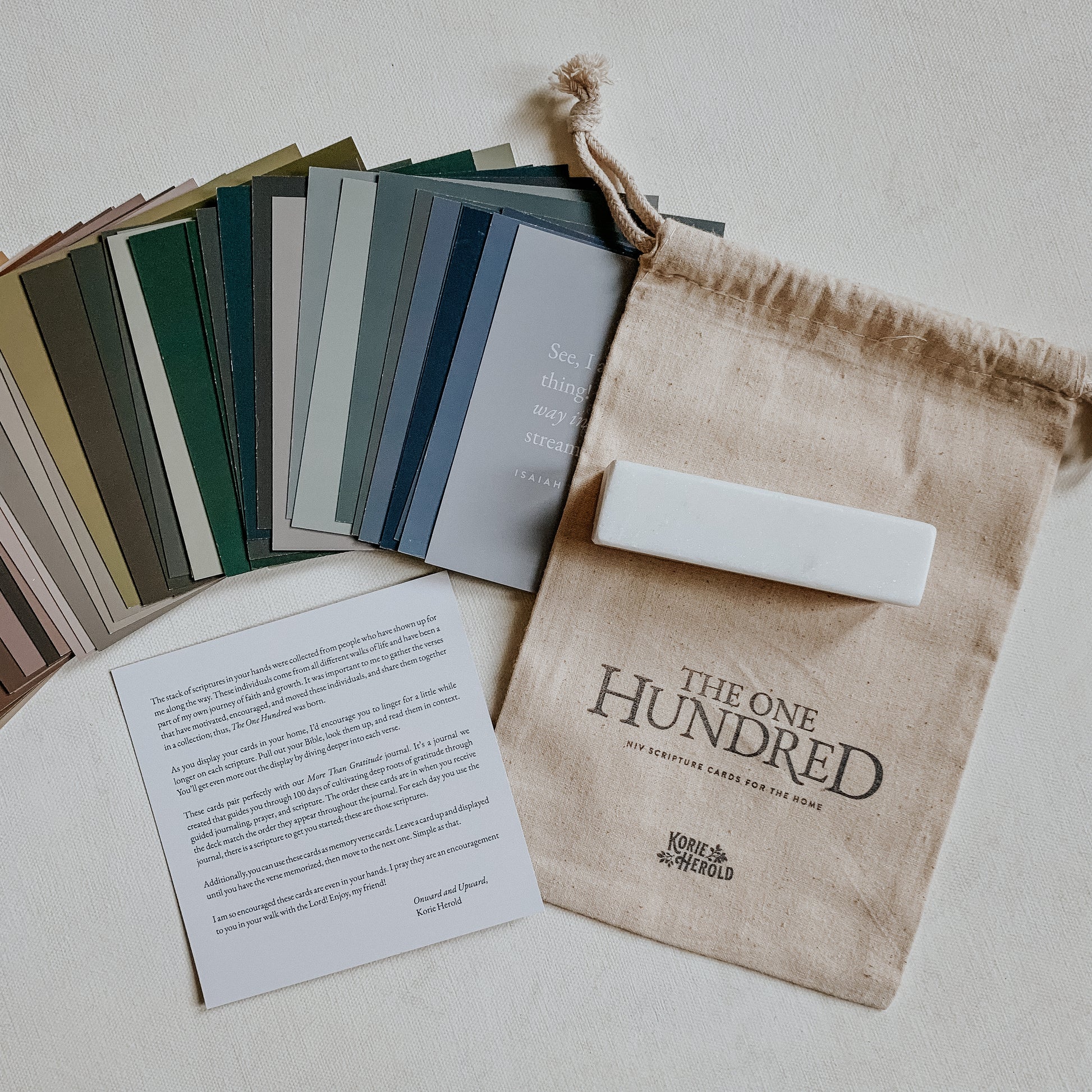 With front-and-back printing, The One Hundred - NIV Scripture Deck features 100 different scriptures on 50 beautiful, earth-toned cards. Highlighting the same passages used in our More Than Gratitude journal, The One Hundred is a practical and meaningful way to immerse yourself in the Word one short yet powerful verse at a time.
